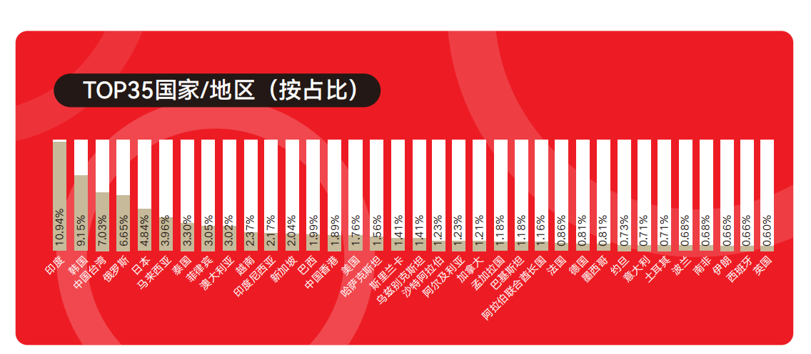 2025年海外观众来源国家前35位排名: